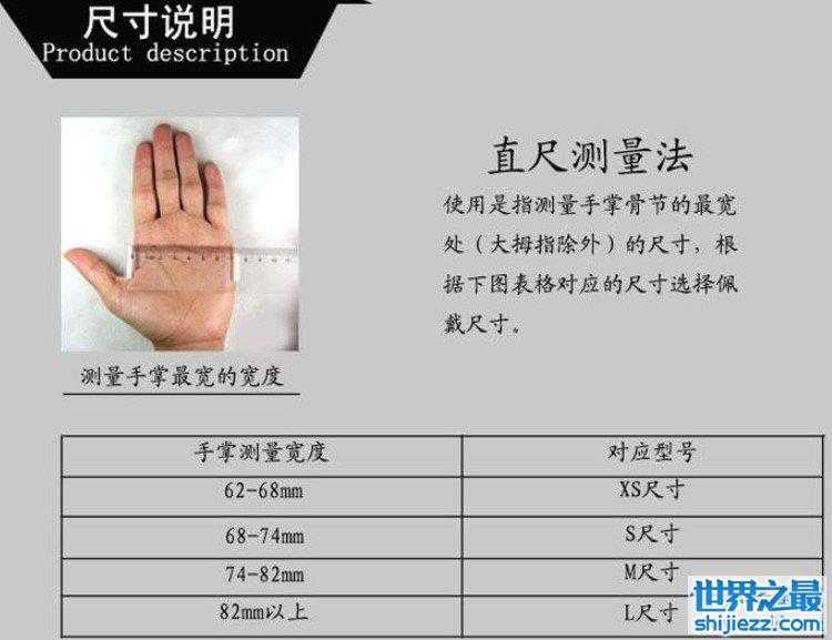 2、直尺测量法:手掌自然摊开,让食指与大拇指呈90度直角,把直尺0刻度对准90度角,测量手掌最宽处。测量出来的数据对照下表,简单换算一下就能知道您能戴多大的手镯了!