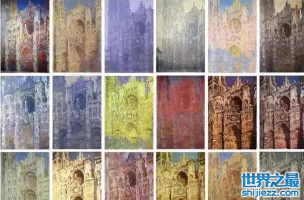 卢昂大教堂也是莫奈十大最著名的画作之一,关于这个系列就有二十副,其中最有名的是清晨,中午,黄昏三副,表现了不同时间,不同色调的卢昂大教堂,现也收藏在巴黎奥赛博物馆。