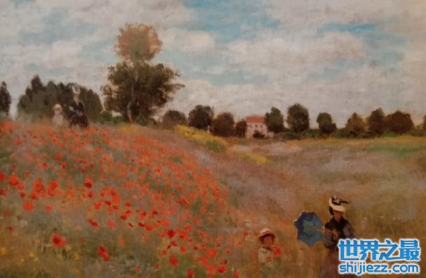这幅作品是在1873年完成的,主要描绘了亚嘉杜中一个罂粟花田中美丽的金色,是一部十分经典的名画,现在也同样收藏在法国巴黎的奥赛博物馆之内。