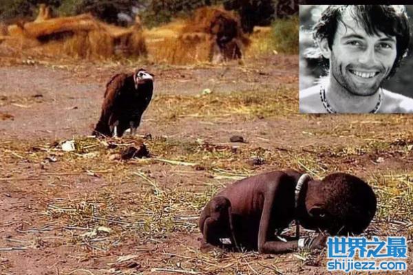 《饥饿的苏丹》是摄影师凯文·卡特的作品,照片上是一个快要饿死的儿童,坐在地上等待死亡,在她身后兀鹰一直在等着这位女童死亡,然后吃掉她。在这张摄影作品获奖之后引起了国际上对苏丹饥荒的关注,而摄影师在作品获奖之后,受到了众多人的谴责,在不久之后就自杀身亡了。