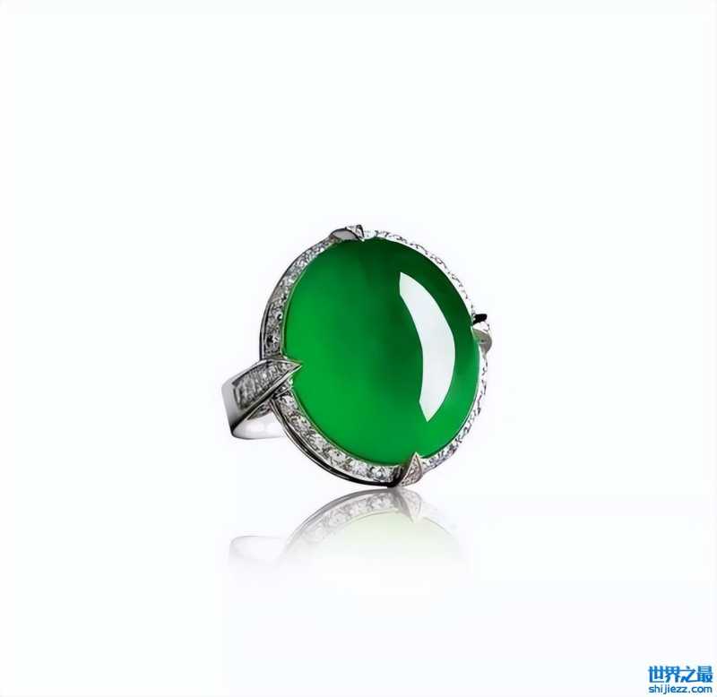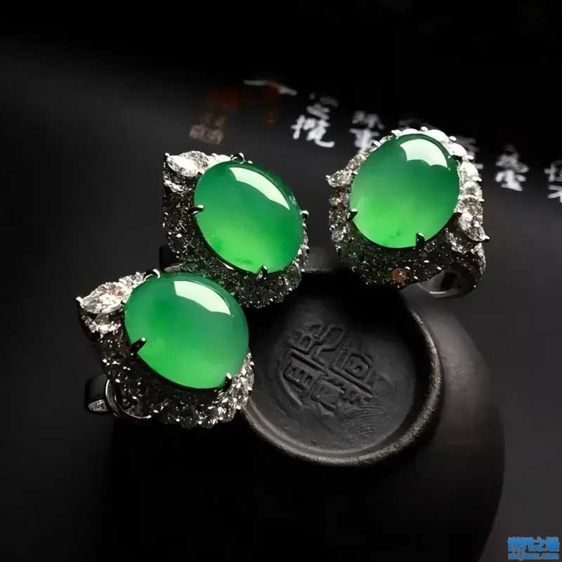 翡翠戒面也被称作为蛋面,无论是水头,颜色,质地,都是整块翡翠中最精华的部分,只有毫无瑕疵的原石才能做成翡翠蛋面。