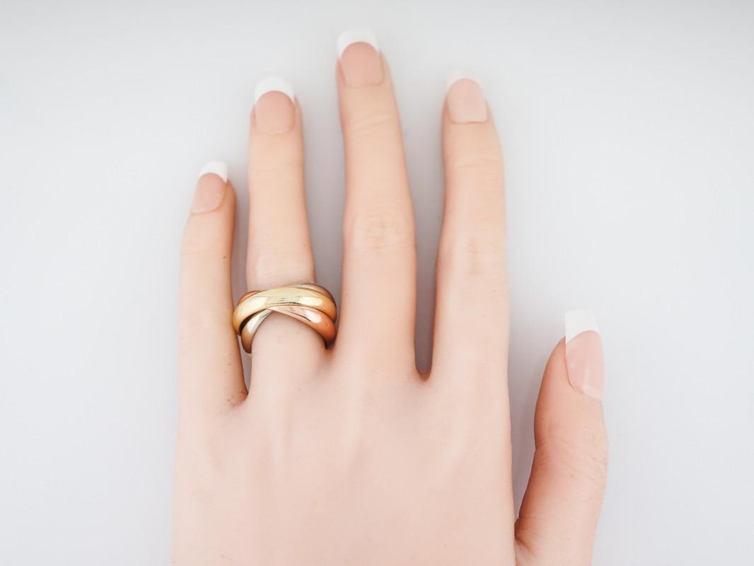 卡地亚的Trinity 系列结合了铂金(友谊)、黄金(忠诚)和玫瑰金(爱情),是世界上最有名的戒指之一。