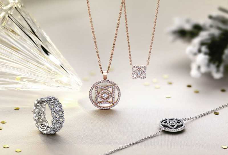 这个系列包括戒指、吊坠和耳环,把黄金、玫瑰金、白金和钻石相结合,打造成奢华璀璨的珠宝。