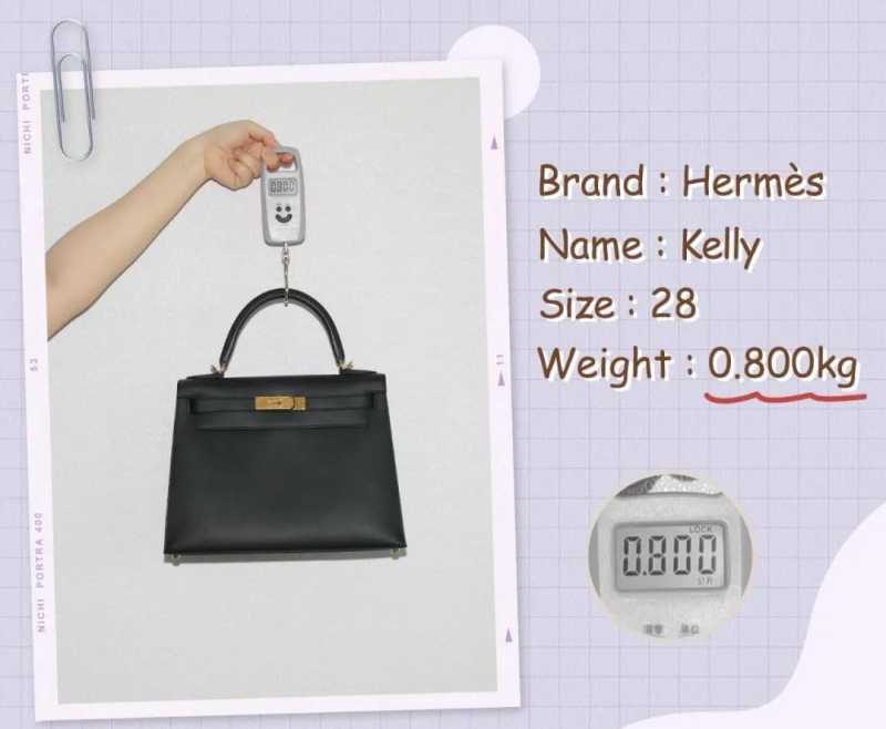 贵妇们都很爱的Kelly 28没想到是中型包里最重的,它的重量有0.8kg!