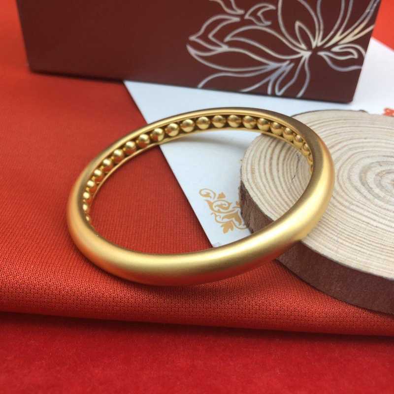 古法黄金制品通常是磨砂外表,有纯手工锻造、用金密实、经典耐看、耐磨等特点,磨砂哑光表面营造出“色泽温润,华而不炫,贵而不显”的视觉效应。而古法黄金手镯,凭借其简约时尚的外表一夜爆红,改变了金手镯不适合年轻人的传统印象;可以说,古法黄金手镯为金首饰打了一仗漂亮的翻身仗。