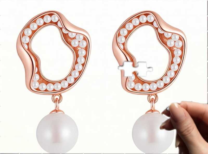 不规则环形贝珠耳钉-玫瑰金色