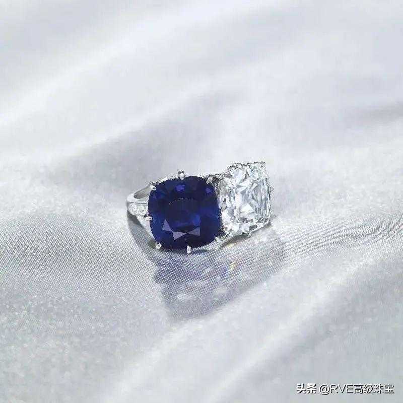 9.23克拉枕形喀什米尔天然蓝宝石及5.25克拉枕形D/IF Type IIa钻石戒指