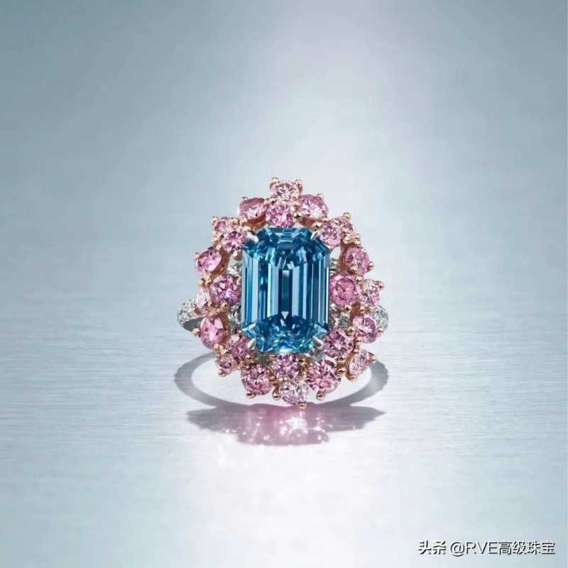 彩色钻石表现十分亮眼。成交价第二高的拍品是一枚3.06克拉的祖母绿切割的蓝钻戒指,并镶嵌粉红色及无色钻石,配经鉴定主石颜色级别达Fancy Vivid Blue艳彩蓝、净度级别可达内部无暇。
