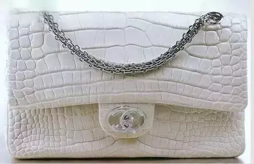 香奈儿(Chanel)奢华的包包由鳄鱼皮制作,334颗钻石作装饰,18K金材质的链条作为长肩带。Diamond Forever “永远的钻石”全世界一共只生产了13个,已知的5个在美国,其它8个不知道卖到哪里,成为在那些买家的收藏。