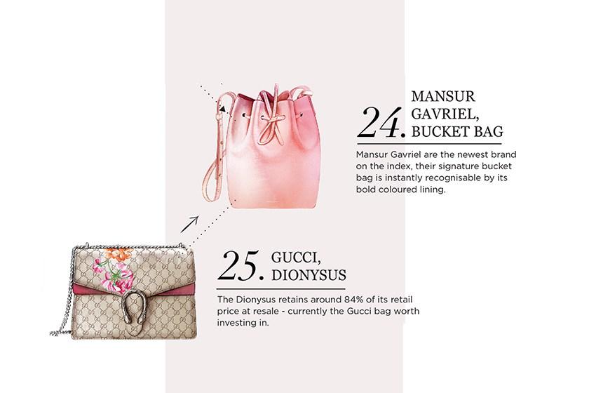 mansur gavriel的桶包大名鼎鼎,米兰达可儿就是背着它蜜运的;gucci 的dionysus是让gucci回春之作,上榜不容置疑;