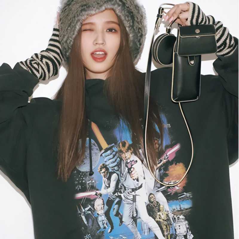 当你选择带有图案的单品时,匹配一个简单的可爱珍珠小包是正确的,千万不要搭配过多的配饰。