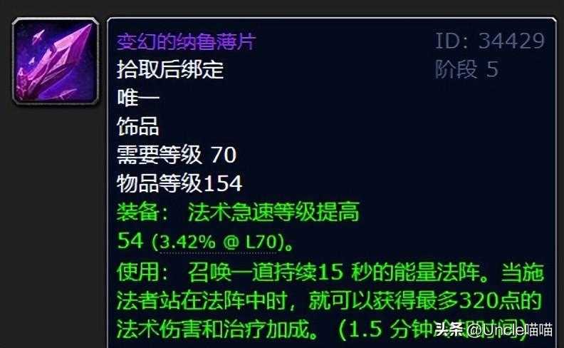 变幻的纳鲁薄片这东西其实还是有所争议的饰品,不过于站桩炮台法师来说性价比还是可以的,喵叔当年的联盟可可爱爱侏儒小法师就入手了一个,输出还是比较的不错,但是这个东西比较吃个人意识,毕竟使用之后,你不能离开法阵,不然的话就享受不到法伤加持,所以对于时机的把握非常重要。真的是古头配薄片,输出看得见啊!