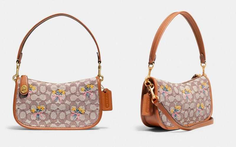 1.COACH SWINGER 经典 SIGNATURE 缇花面料花束主题刺绣手袋