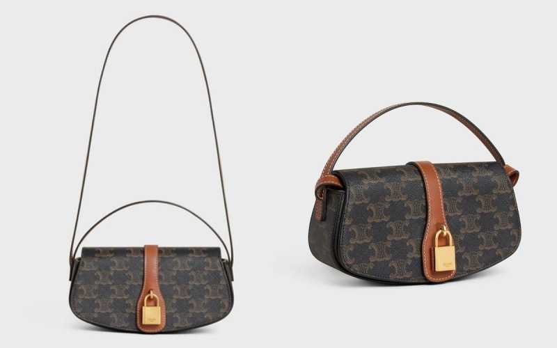 以半椭圆的包型,配上CELINE标志性Triomphe帆布以及小牛皮饰边,简约俐落的外型真的美到让人窒息~另外正面闪闪发亮的金色锁扣让精致度更加分,长形的设计很好放入随身物品,可以手提与肩背两用,种种优点让人想立马砸钱带回家!