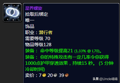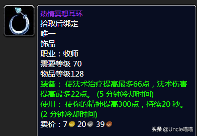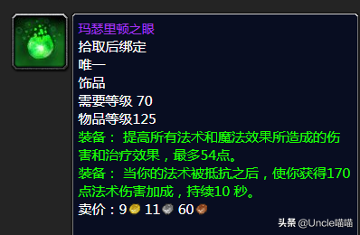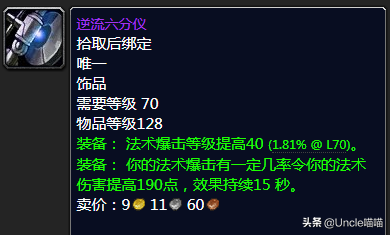 这东西的均价那么高,喵叔感觉虚高成分居多,喵叔去过的玛瑟里顿团基本无人问津。当然也有大佬强势分析该饰品在术士玩家名字140左右堆法术爆击有着奇效,很可能很多玩家受此影响强势购入也说不定,喵叔这边真的没用过就不做具体分析,如果有懂行的也可以评论区留言分享你的使用心得,喵叔这边先谢过了。