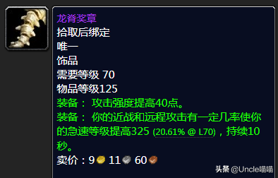 熟悉喵叔的老粉丝应该知道,这款卡拉赞莫罗斯出品的莫罗斯的幸运怀表可是一度是喵叔的怨念所在,也是在不久之前喵叔强势的600G拿下它方才了了心愿堪称美滋滋。其实就怀表本身而言的话收益真的高,特别是对于熊T,后期一般的熊T玩家搭配魔导师平台出品的赞誉就就可以当个排骨人毕业了,躲闪本身熊德要求就高,所以930的均价合情合理值得入手,买不了上当买不了吃亏强势入榜毋庸置疑。
