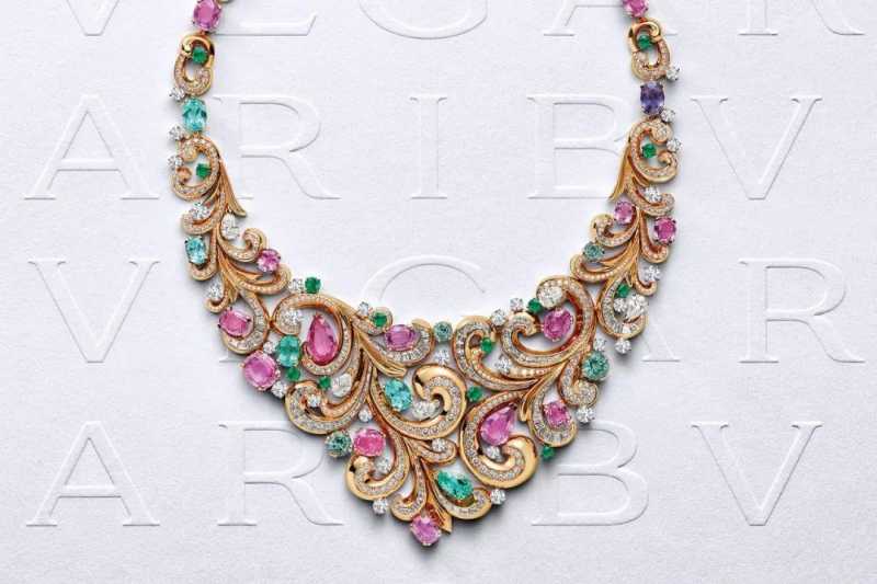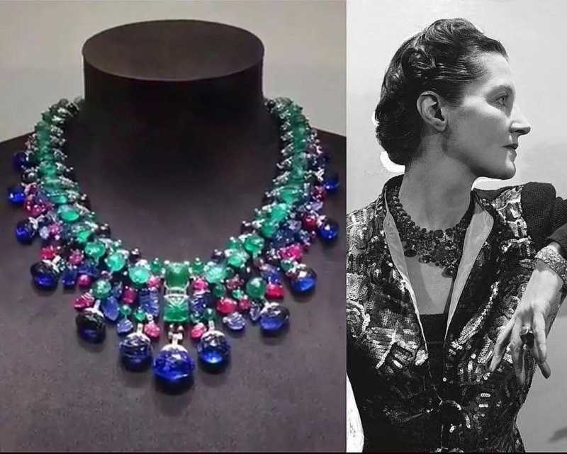 1930 年代 “水果锦囊(Tutti Frutti)”系列出现了,社交名媛 Daisy Fellowes 主导了它的流行,1936 年她向卡地亚定制了 Collier Hindou 项链,这条项链突出了宝石五彩斑斓的色彩,具有强烈的视觉冲击力。