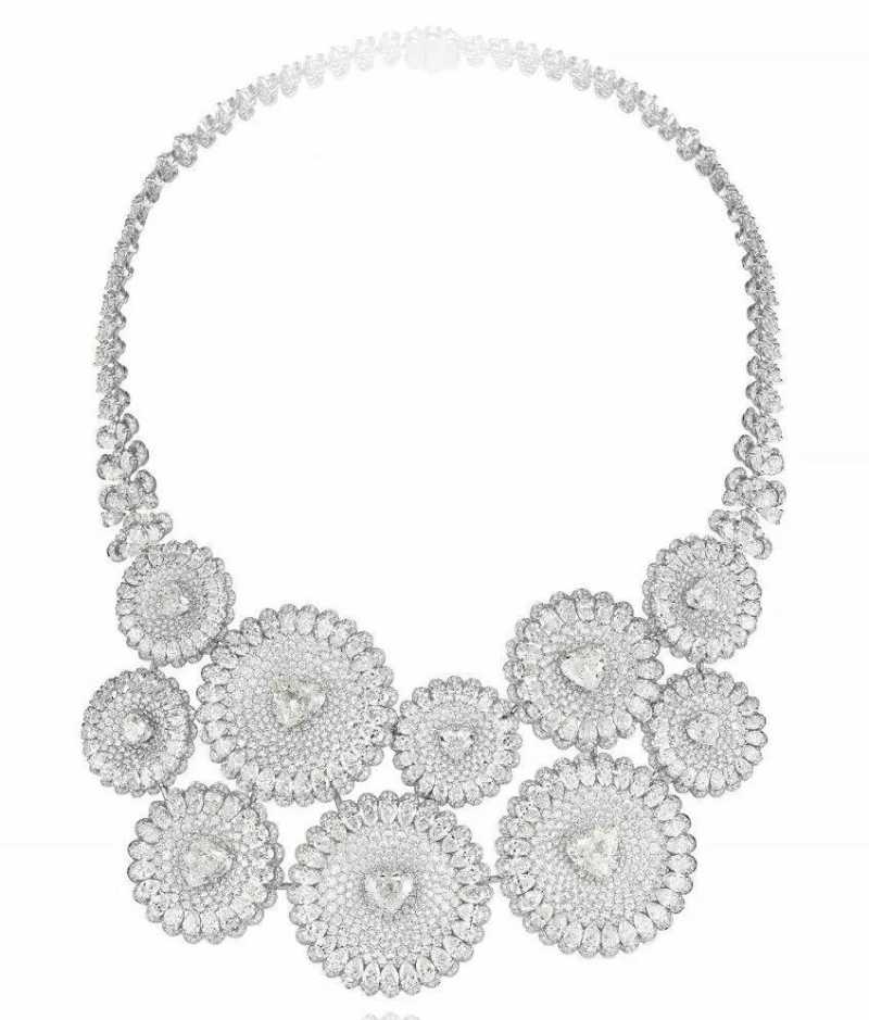 Bib Necklace 往往体积很大,装饰性强,轻易就能达成“全场中心”的效果,在高级珠宝中经久不衰,毕竟它太适配大颗宝石和钻石的华丽登场了。