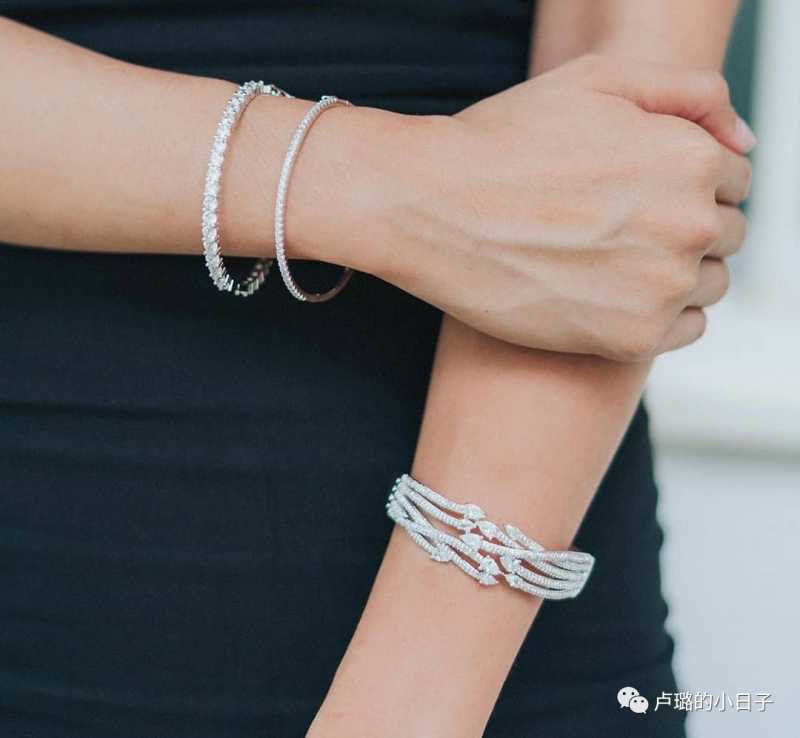 材质基本都是玫瑰金、镀银、月亮石和珍珠等,手镯都是这种钻石类,看上去就超有质感。