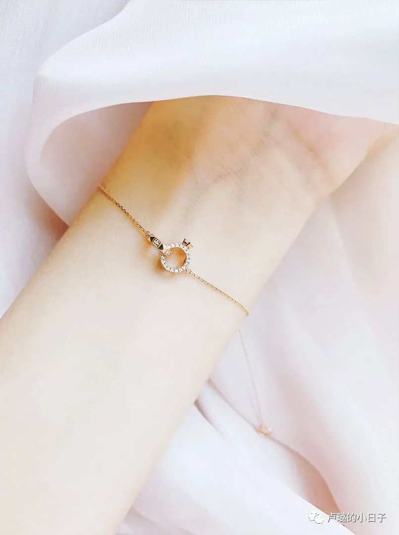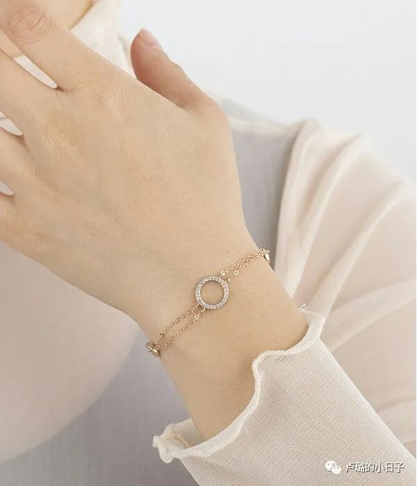 圆环满钻手链的整体比较偏向简约风,但其双层链的设计增加了一点小心机,看起来不会太单调。