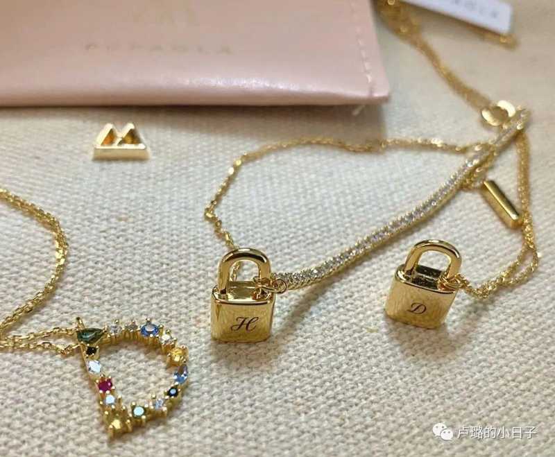 刻有A~Z的斜体字母的吊坠小锁上可以选择,可以根据的名字来购买,或者自己喜欢的字母。