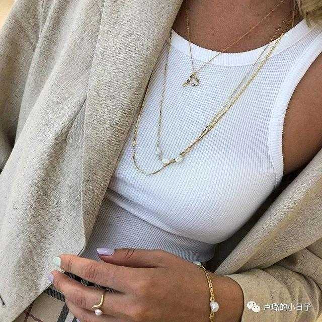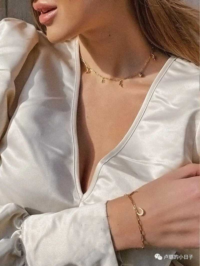 纤细链条上镶满小钻,blingbling的,搭上职业风的小西装也会显得十分温柔,更显女人味。