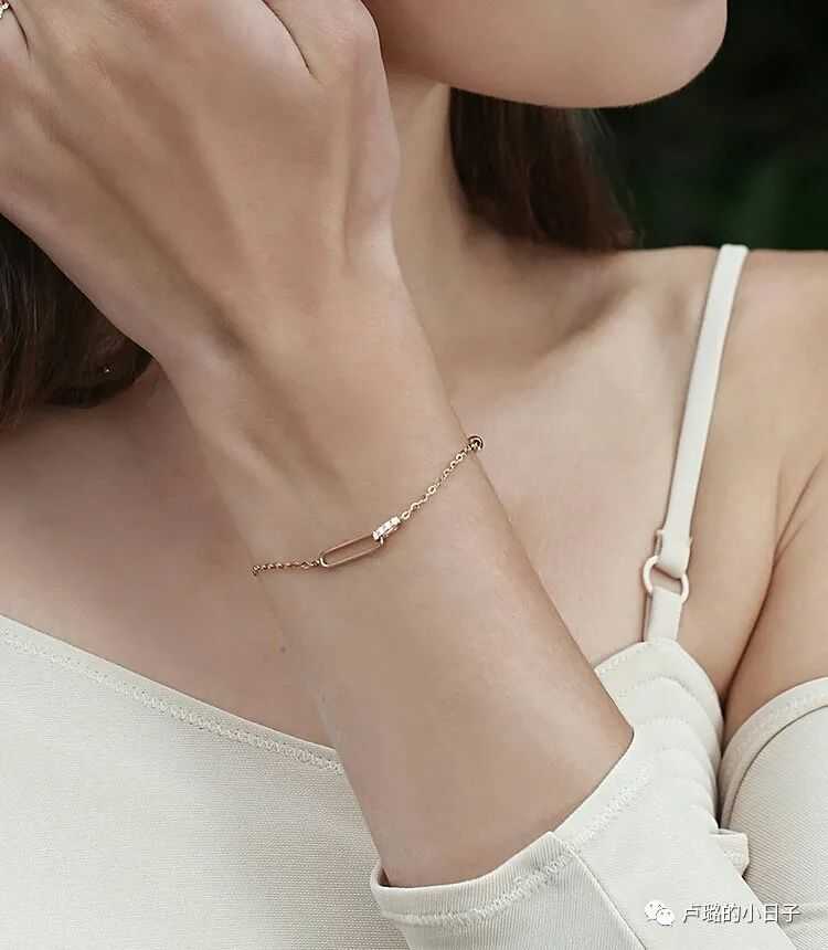 银色大气,玫瑰金温柔,镶嵌了小水钻,会让整条手链的质感更加有层次。