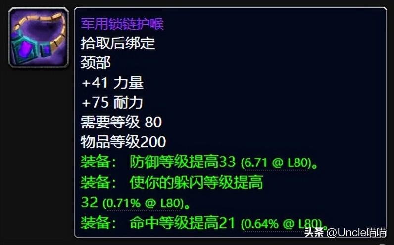 高额命中超强耐力无敌防等一流躲闪就问在座的各位战士T、DKT大佬有谁能够拒绝的了他,简直就是无敌的存在好吧,各方面都是很均衡的一款顶尖项链存在了。