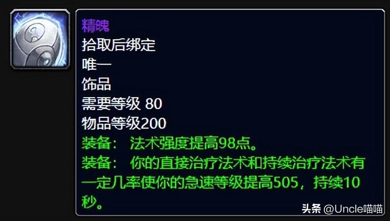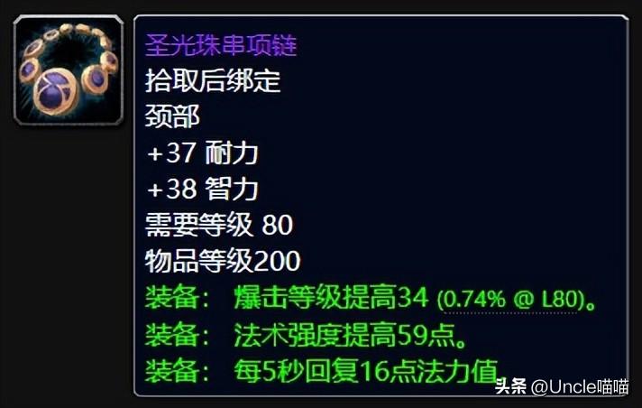 此款高暴击5回的项链不用多说肯定是奶骑最为想要的了,牧师奶萨也同样可以,不过奶德而言的话比较的一般,毕竟奶德就算是到了WLK还是非常的对精神吃紧。