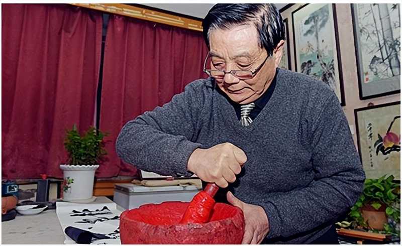 边搅拌边调色,加入其它材料,直至连续搅拌半个月后,从最初的液体逐渐成为固体,龙泉印泥才算制作完成。所以制作一份龙泉印泥至少也需要六年的时间,用这样的印泥写出的字,盖上的章都会保持一百年都不褪色。