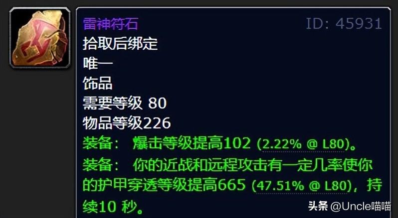 特别像是狂暴战、猎人甚至是增强萨来说喵叔个人都是非常的推荐,那爆击等级触发之后堪称恐怖如斯四个大字,简直是黄字满屏跑,输出低不了!