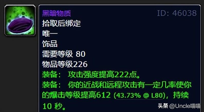 陨星水晶可以说是奶骑准BIS的巅峰饰品,那么同样由观察者奥尔加隆出品的黑暗物质的话同样是追求常驻攻击强度不可多得的极品存在了。
