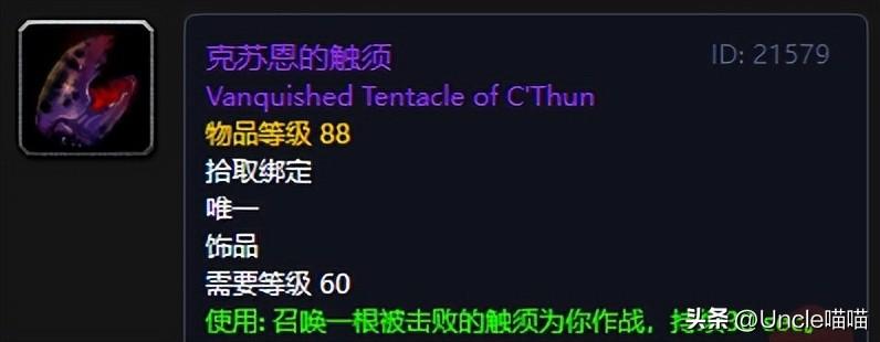 对,没错。他就是克苏恩的触须,就这东西而言无论从哪个角度看都是大号版本的触须存在了,这两大顶尖BOSS的触须皆是为玩家所用,那么对于这款拥有者恐怖如斯的爆击等级提高的被征服的尤格萨隆之爪而言,屏幕前的你买不买账呢?