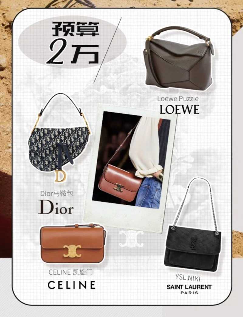 YSL→niki;Loewe→puzzle; CELINE→凯旋门;Dior→马鞍包;