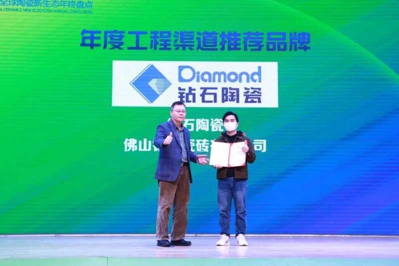 钻石陶瓷获得了“年度工程渠道推荐品牌”的称号;