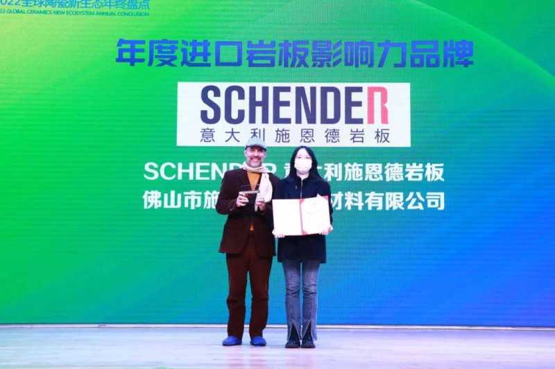 意大利施恩德岩板获得了“年度进口岩板影响力品牌”的称号;