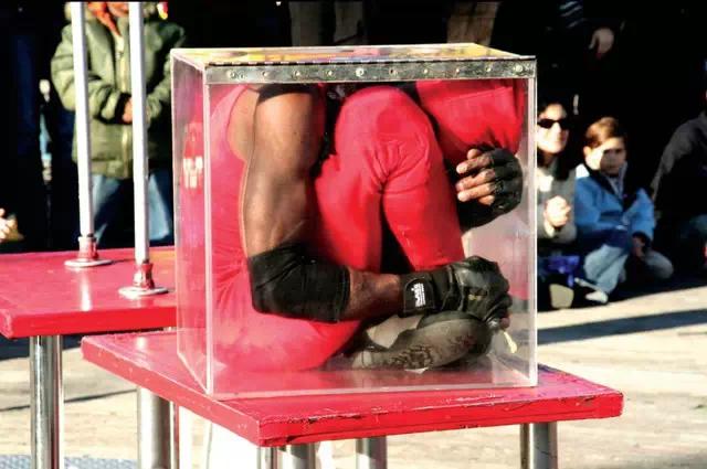 2013年6月27日,约吉·拉泽,又名肯内特·格里纳韦(美),仅耗时5.35秒钻进一个50.8cm×50.8cm×44.4cm的箱子。钻箱子最快的女性为斯凯·布罗贝格,在2011年9月15日,她仅用4.78秒就钻入一个规格为52cm×45cm×45cm的箱子。
