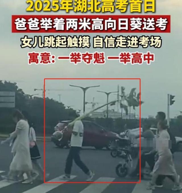 比如说湖北一位考生的父亲因为特别的送考方式登上热搜,这位父亲手举一棵两米多高的向日葵为孩子护航。