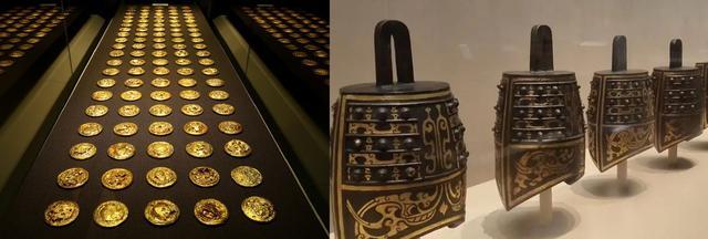 从海昏侯刘贺汉墓中出土的金饼和编钟