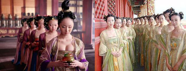 唐代的后宫也有严格的品级区分,并以贵、淑、德、贤四妃为夫人,后宫设立六局二十四司,共计190人,另有女史10人,这些算是有品级和头衔的,而无名无分的宫女则不计其数。根据史书记载,在唐玄宗开元天宝年间,仅长安大内、大明、兴庆三公和东都大内、上阳两宫,就有40000名宫女。