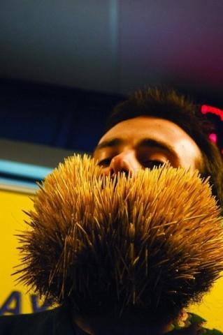 在爱尔兰的一个节目秀场中,埃德.卡希尔往自己的胡须里面塞牙签,塞进一共3107根牙签,成为了世界之最,被记录进吉尼斯纪录里。埃德全程用了3个小时的时间,而且还不得不请求别人帮助,(真是闲得无聊啊!)