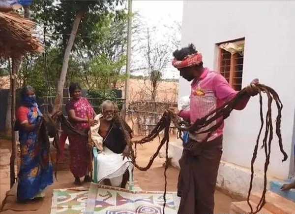来自印度古吉拉特邦的一位老人,以18.89米的长度,成为世界上头发最长的人