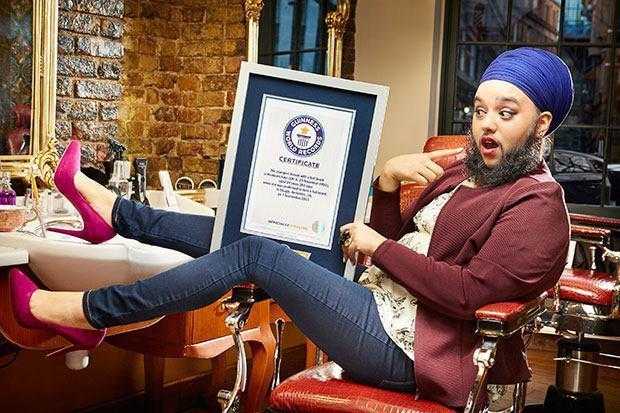 男人长胡子是一件非常正常的事,那是女人长胡子就不多见了。英国伯克郡有个妹子叫哈纳姆考尔,现在是世界上最年轻长胡子女性的吉尼斯纪录保持者,很多人奇怪,他为什么会长胡子呢?原来哈纳姆考尔得了一种叫多囊性卵巢综合病的病,这种病导致他面部毛发旺盛,从而有了浓密的络腮胡,哈纳姆考尔24岁时获得的这项奇葩的吉尼斯世界纪录,因为长胡子他从小就被欺负,但是哈纳姆考尔并未就此灰心丧气。经过努力,他现在已经是一名模特了。