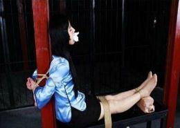 看了上面美女老虎凳视频,我们对这个刑具应该有了一定的了解,这种刑具其实非常的简单,就是有一个长凳子,然后在一头竖直安装着一根木桩或者木柱,所构成的,在用刑的时候,将犯人绑在上面,身体成90度的形状,然后就不停的往脚下面放砖头,来拉伸腿,给人造成痛苦。手脚都被绳子牢牢捆绑,无论受刑者遭受怎样的痛苦都无法逃脱,甚至双腿连挣扎一下都不行,因为挣扎需要活动关节部位,而上老虎凳时双腿和膝盖关节部位被完全绑缚固定,且承受着重压,根本动弹不得。