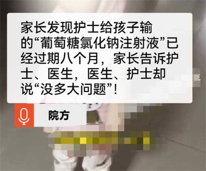在广东揭阳有一个家长曝光,说自己的两岁孩子因为发烧就送去了医院,根据医生的诊断,需要给孩子输液,可是在输送葡萄糖的时候却发现这个药品已经过期了,八个月的时间,当家长去询问。护士的时候,护士却说过期的药品问题不大,家长随后说问题不大,是不是也代表着还是有问题的,不过护士在这之后并没有说话。家长是非常的担心。
