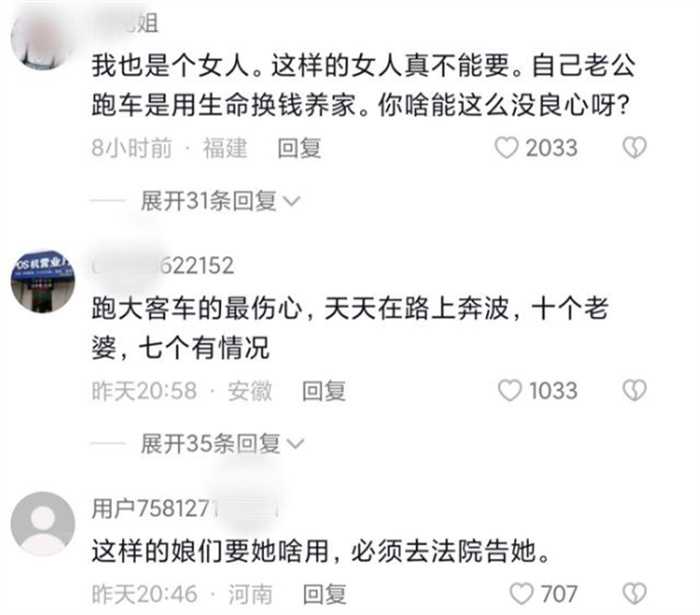 网友们都建议这个司机师傅去法院起诉自己的妻子,把自己丢失了几十万追回,除此之外,还要赶快离婚,尽快的远离这样蛮横的女人,要不然自己以后的生活也不会好过。其实并不是把钱全部都交给自己的妻子是绝对正确的。