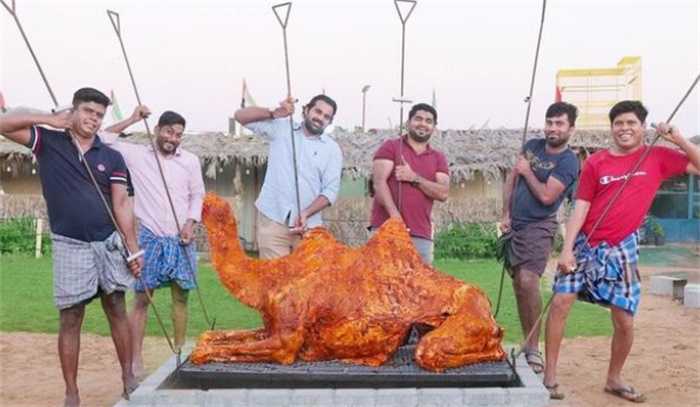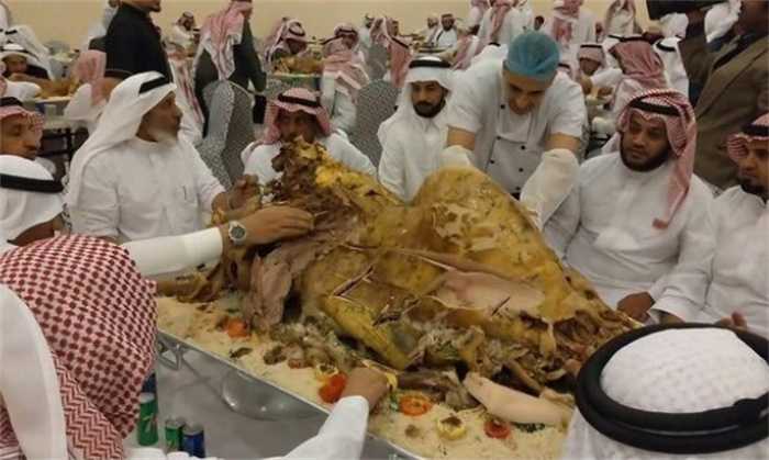 迪拜人吃骆驼是烤骆驼,就和我们中国的烤羊一样。一般是在招待贵宾的时候才会有烤骆驼来吃,因为骆驼本身体型就很大,所以在制作的时候非常困难,光是腌制都需要十几个小时,在腌完之后还需要放在火上面烤八个小时才能够有烤骆驼吃,所以说光是准备工作就需要很长时间要不是,在迪拜大家都很有钱,我想要吃一顿烤骆驼还真不容易。