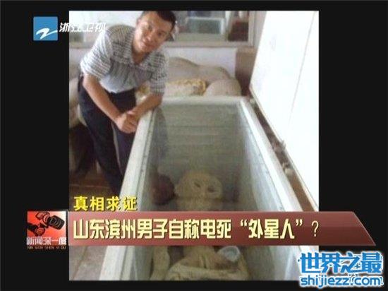 在2013年的6月,一位山东滨州人李某自称在三个月前碰到了五个乘着飞碟的外星人,其中一只被他过失致死,之后,为掩人耳目,就把它藏在了仓库当中。据他的描述,被他电死的外星人身长1.9米,重达45公斤,头很大。