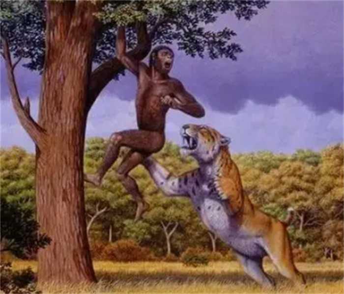 而树上其实是大多数食肉动物的禁区,尤其是有多个原始人共同栖息的大树,当遇到食肉动物时,原始人在上,敌人在下,它想要冲上来并不容易。