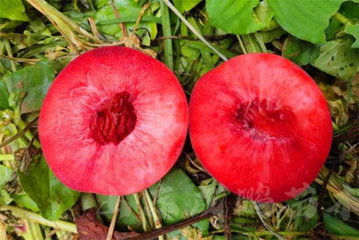 血桃又名中华血桃,它表面和普通桃子差不多,但成熟后它的果肉和果汁都会呈大红或紫红色,看着虽有点可怕,但吃起来脆甜多汁,就连本身自带的桃子香味儿都能让人心旷神怡。除了口感以及傍碗,血桃的营养价值同样很高。它含有丰富的钾,有机。酸、纤维素和果胶等,能有效的促进消化液分泌,增加肠道蠕动,有一定的润肠通便作用。